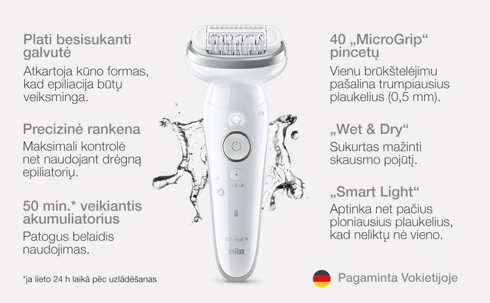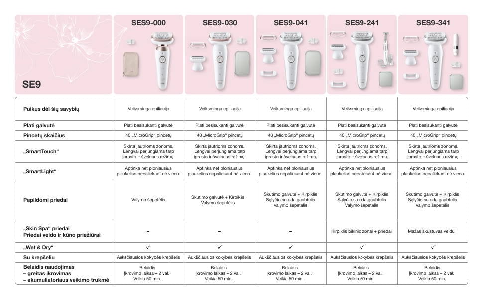 Braun Epilator | SES9-030 Silk épil 9 | Operating time (max) 50 min | Number of power levels 2 | Wet & Dry | White/Rose